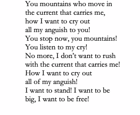 Her eyes are always open And she does not let me sleep In the light of day her dreams Make suns evaporate, Make me laugh, cry and laugh, And speak when I have nothing to say.